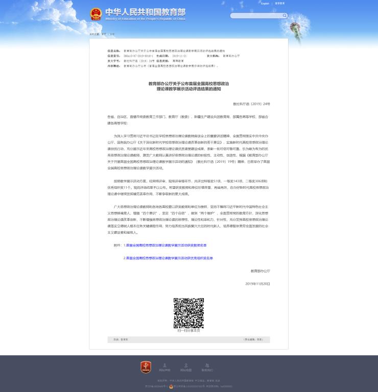 12月4日,教育部社科司网站发布《教育部办公厅关于公布首届全国高校思想政治理论课教学展示活动评选结果的通知》,我校草莓视频 教师李海涛获得首届全国高校思想政治理论课教学展示活动特等奖。