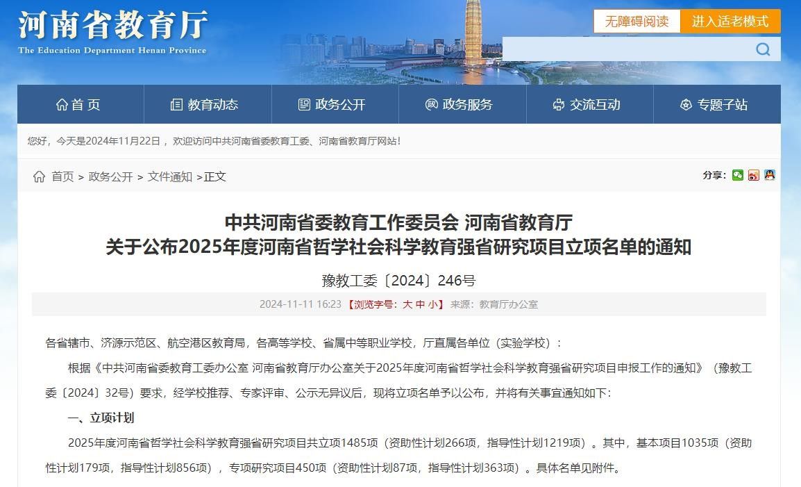 近日,河南省教育厅公布了《2025年度河南省哲学社会科学教育强省研究项目立项名单》(豫教工委〔2024〕246号),草莓视频