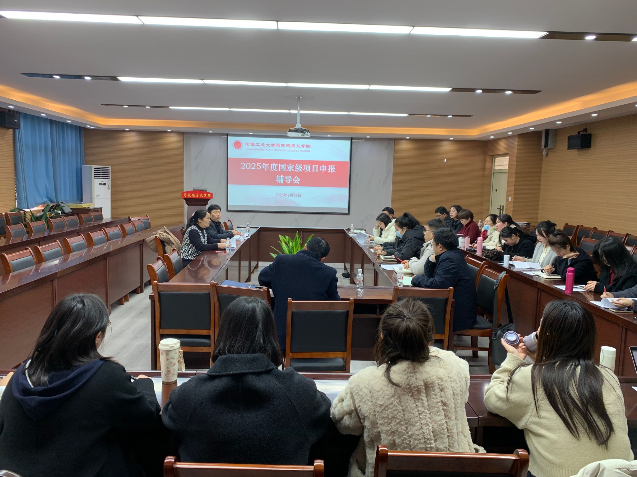 在3511会议室召开2025年度国家级项目申报辅导会。会议特别邀请郑州大学蒋桂芳教授参会指导,会议由院长李海涛主持,拟申报国家级项目的教师参加会议。