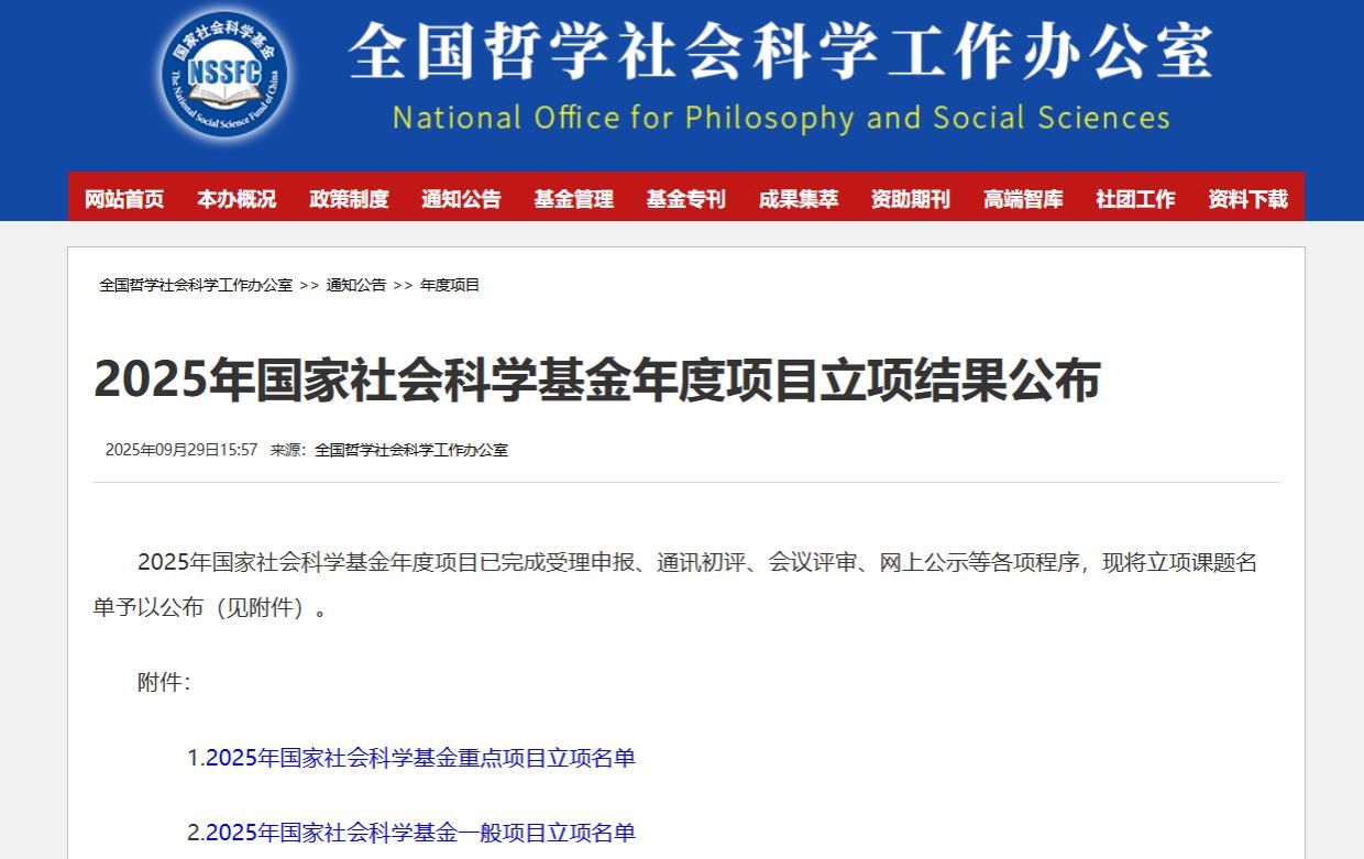 9月29日,全国哲学社会科学工作办公室公布了2025年国家社会科学基金年度项目立项结果,草莓视频