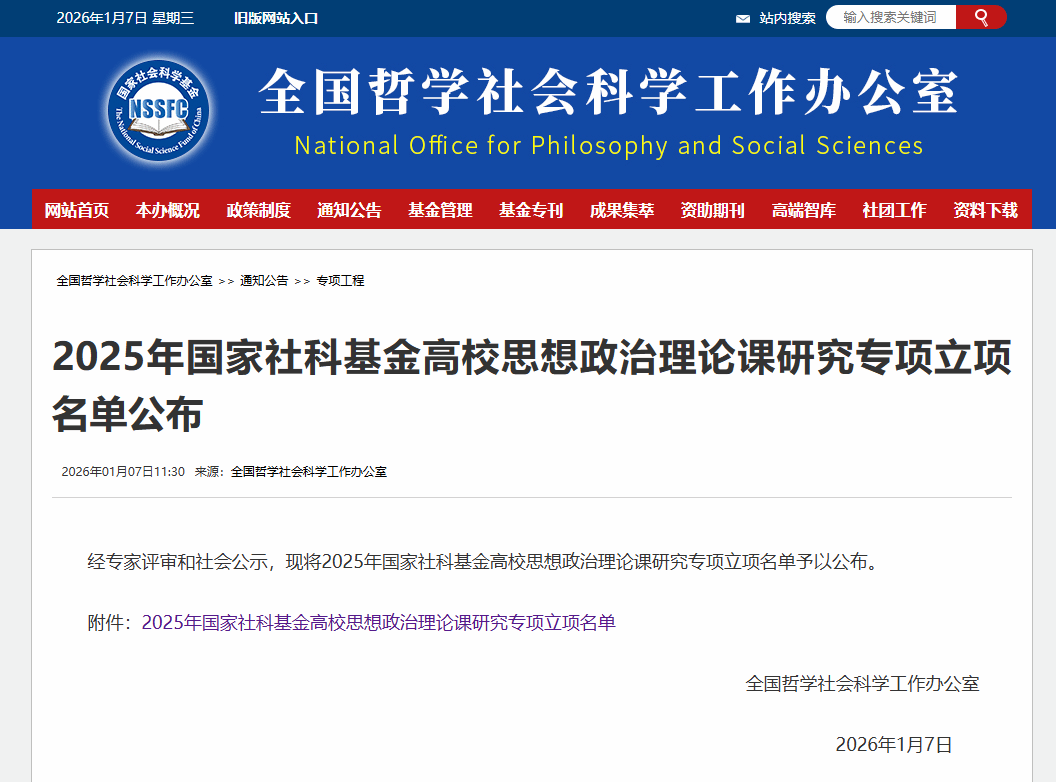 1月7日,全国哲学社会科学工作办公室公布了2025年国家社科基金高校思想政治理论课研究专项立项名单。草莓视频
