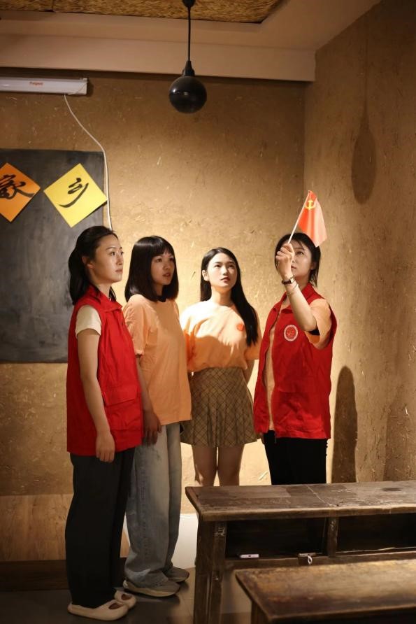 80多年前,河南大学与潭头人民穿越抗战烽火硝烟,携手并肩、同甘共苦。队员们在河南大学抗战时期潭头办学旧址纪念馆通过影像、文字、旧物等资料了解当时河南高等教育的历史背景、教学情况、文化生活等。队员杜阳莉在看到“潭头河大惨案”时不禁落泪,在翻起一本学员证时好像与当年的学子建起了跨越时空的连接。参观结束后马院学子在留言本上留下“不忘初心,砥砺前行”的寄语,致敬一代学人在抗战硝烟中的坚守。